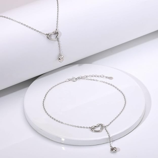 925 Sterling Silver Heart Drop Anklet – Elegant & Minimalist
