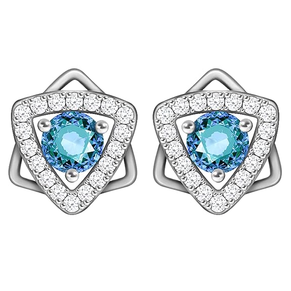 Make a bold yet classy statement with these stunning triangle-shaped stud earrings. Featuring a vibrant blue center stone framed by sparkling cubic zirconia and a sleek geometric silver-tone design, these earrings are perfect for those who love a modern twist on elegance.