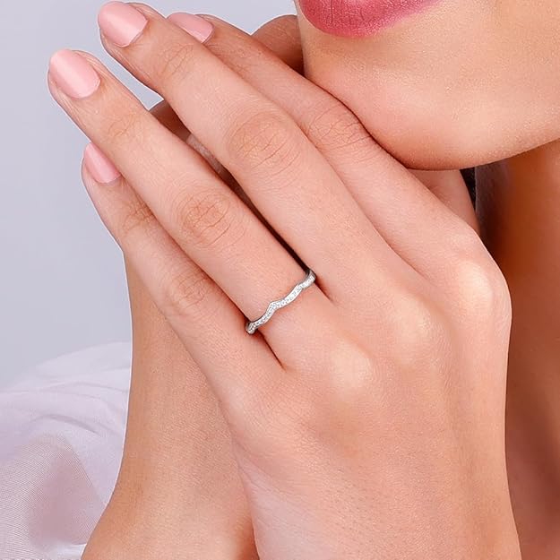 Delicately crafted, this curved pavé diamond band ring adds a graceful touch to any jewellery collection. Its sleek, silver-tone finish and shimmering pavé-set stones make it perfect for stacking or wearing solo for understated elegance.