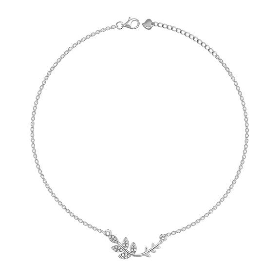 Embrace the beauty of nature with this graceful leaf-inspired anklet. Made from genuine 925 sterling silver, it features a delicate cable chain adorned with a sparkling cubic zirconia-studded leaf design at the center. The polished finish and intricate detailing create a refined, feminine look perfect for both everyday wear and special occasions. Secured with a sturdy lobster clasp, it offers comfort, durability, and timeless charm.