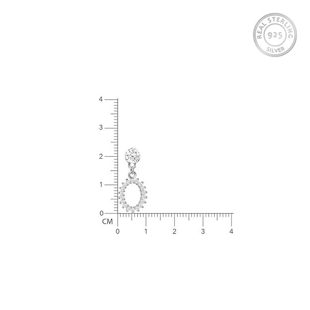 Elevate your style with these graceful oval drop earrings crafted in fine 925 Sterling Silver. Featuring a round stud top with brilliant-cut cubic zirconia and a dangling open oval frame adorned with shimmering stones, these earrings bring refined sparkle to any occasion.