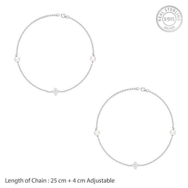 925 Sterling Silver Clover & Mother-of-Pearl Charm Anklet – Subtle Elegance, Timeless Style