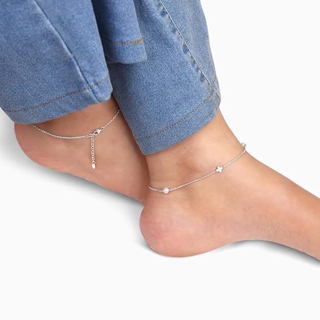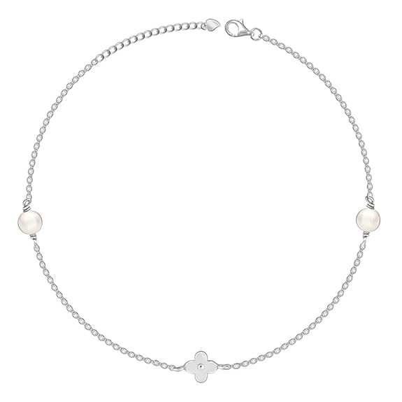 925 Silver Pearls & Flower Anklet,Single| Gifts for Women and Girls | With Certificate of Authenticity and 925 Stamp