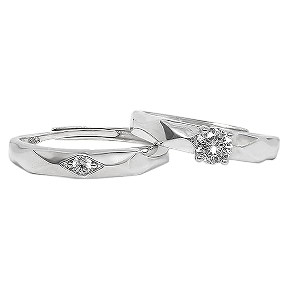 925 Sterling Silver Couple Rings with CZ Solitaire