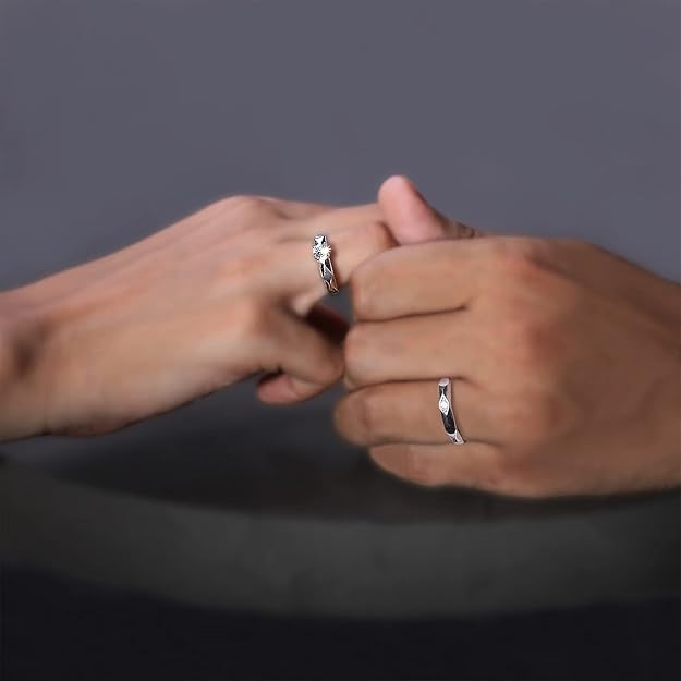 925 Silver Rhomb Couple Band, Adjustable | Promise Rings for Men and Women