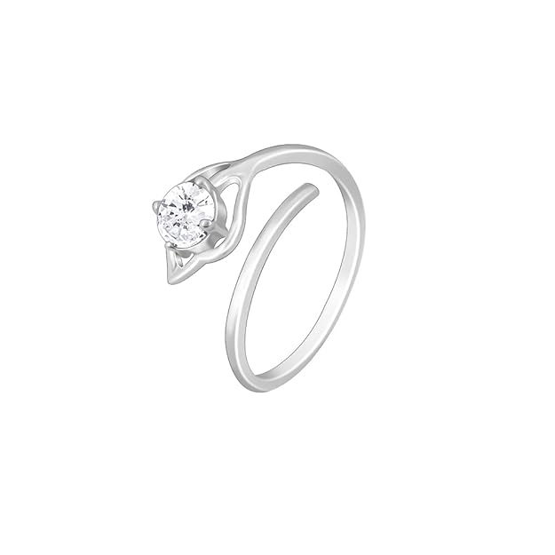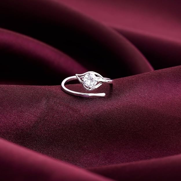 Embrace natural elegance with this leaf-inspired solitaire ring, featuring a sparkling center stone cradled by delicate leaf-shaped prongs. The open adjustable design ensures a perfect fit and adds a modern twist to timeless charm.