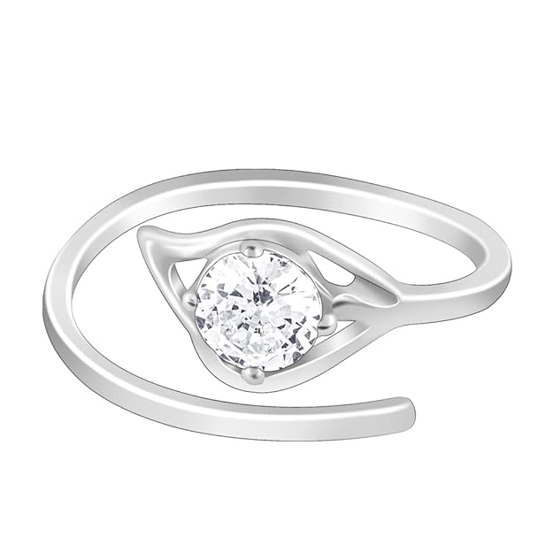 Leaf-Inspired Solitaire Adjustable Ring in 925 Sterling Silver