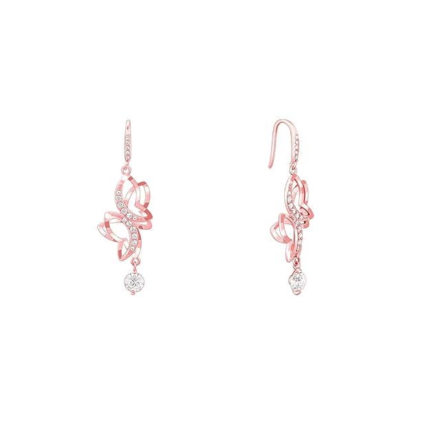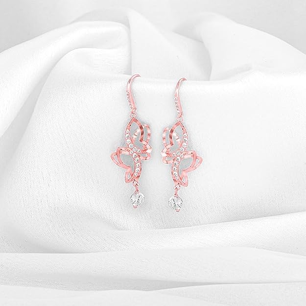 Rose Gold Butterfly Drop Earrings with CZ Dangle