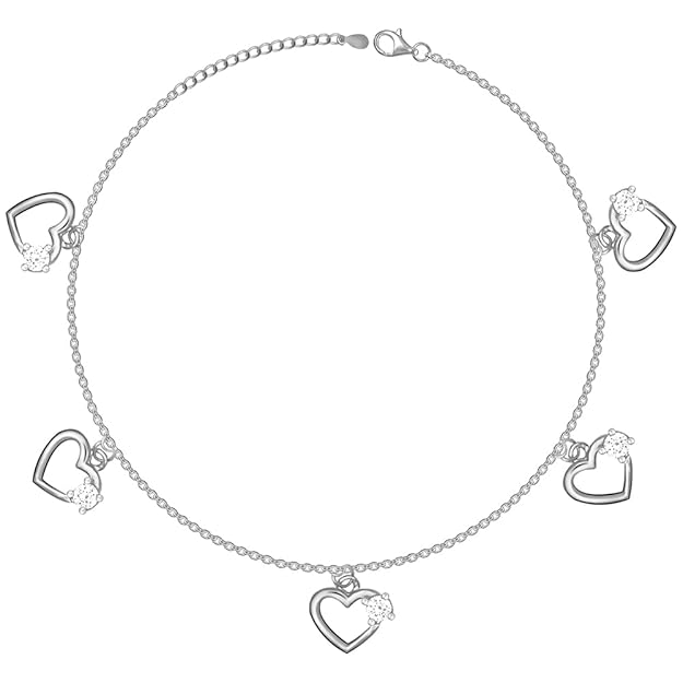 Add a touch of romance to your style with this dainty sterling silver anklet. Featuring a delicate open-heart charm at the center, it gracefully extends into a short drop chain finished with a polished mini heart, creating a playful yet refined look. The fine cable chain offers comfort and durability, while the secure lobster clasp ensures it stays perfectly in place.