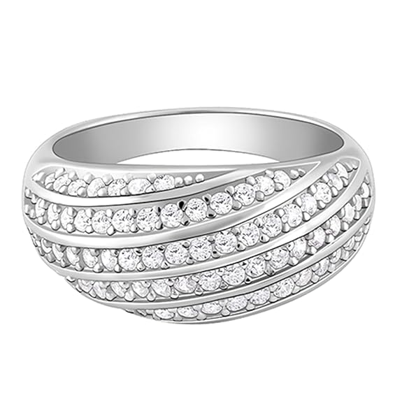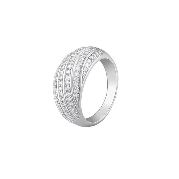 Elevate your elegance with this stunning triple-row band ring, crafted in 925 Sterling Silver and encrusted with fine cubic zirconia stones. The graceful overlapping design adds a modern twist to a classic band, making it ideal for both formal occasions and everyday luxury.