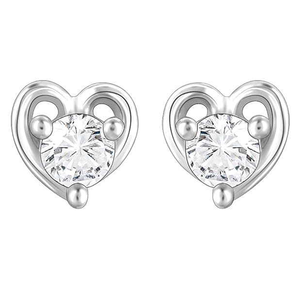 These charming heart stud earrings are the perfect blend of simplicity and sparkle. Designed in high-quality sterling silver, each earring features an open heart shape embracing a brilliant round-cut center stone. Delicate yet eye-catching, they’re ideal for everyday wear or as a meaningful gift for someone special.