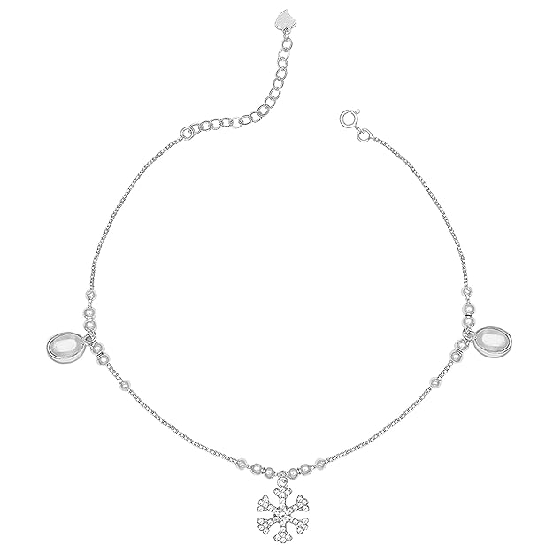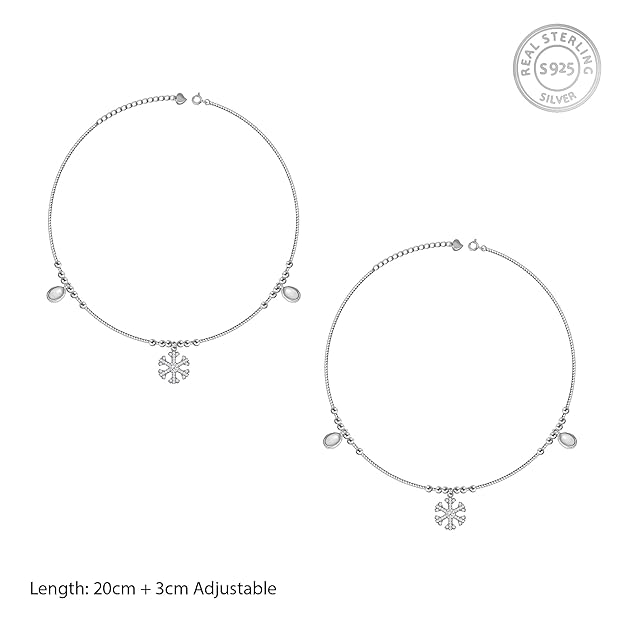 925 Silver Zircon Snowflake Anklet, (Single) Gifts for Girlfriend, Gifts for Women & Girls