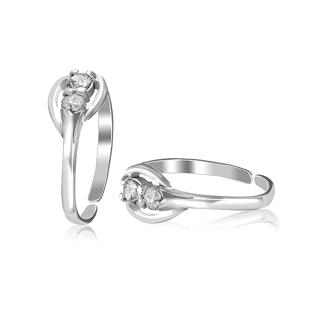 Add a sparkle of elegance to your every step with these minimal yet stunning twin stone toe rings. Expertly crafted in high-quality 925 sterling silver, each ring features two round-cut cubic zirconia stones nestled in a sleek, open-wrap band design. The stones catch the light beautifully, offering just the right amount of shimmer for both casual and festive wear. The adjustable fit ensures maximum comfort for all-day wear.