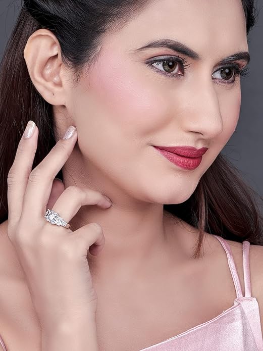 925 Sterling Silver Cubic Zirconia Finger Ring For Women And Girls | with Authenticity Certificate, 925 Stamp