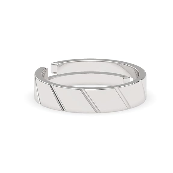 A sleek and modern design for everyday wear. This open-band ring features evenly spaced diagonal grooves across a polished sterling silver surface, creating a subtle yet stylish pattern. The adjustable fit ensures comfort and versatility for all-day use.