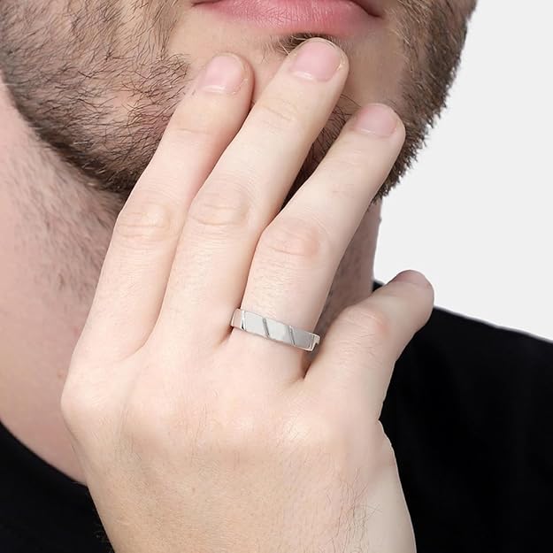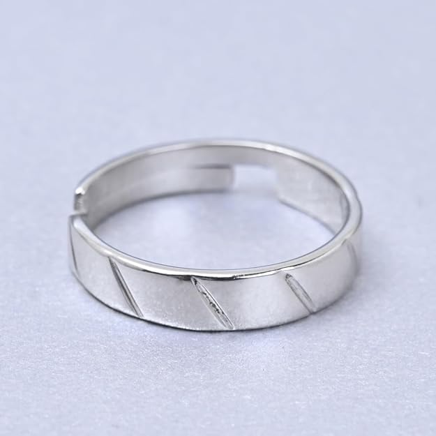 925 Sterling Silver Men's Diagonal Groove Adjustable Band Ring