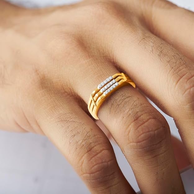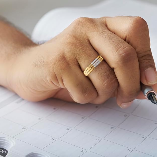 Men’s Triple Row Diamond Accent Gold Ring | Gift for Men and Boys