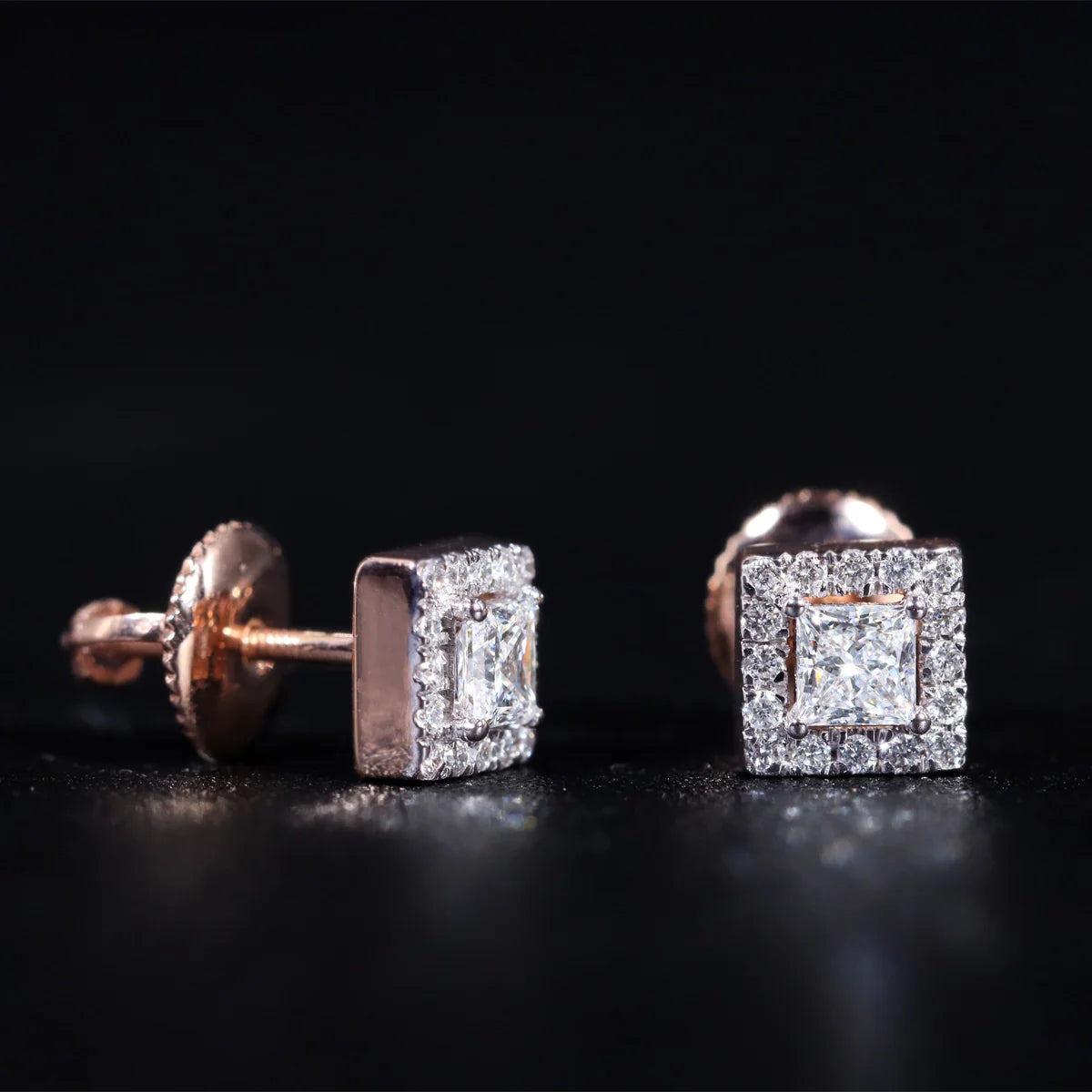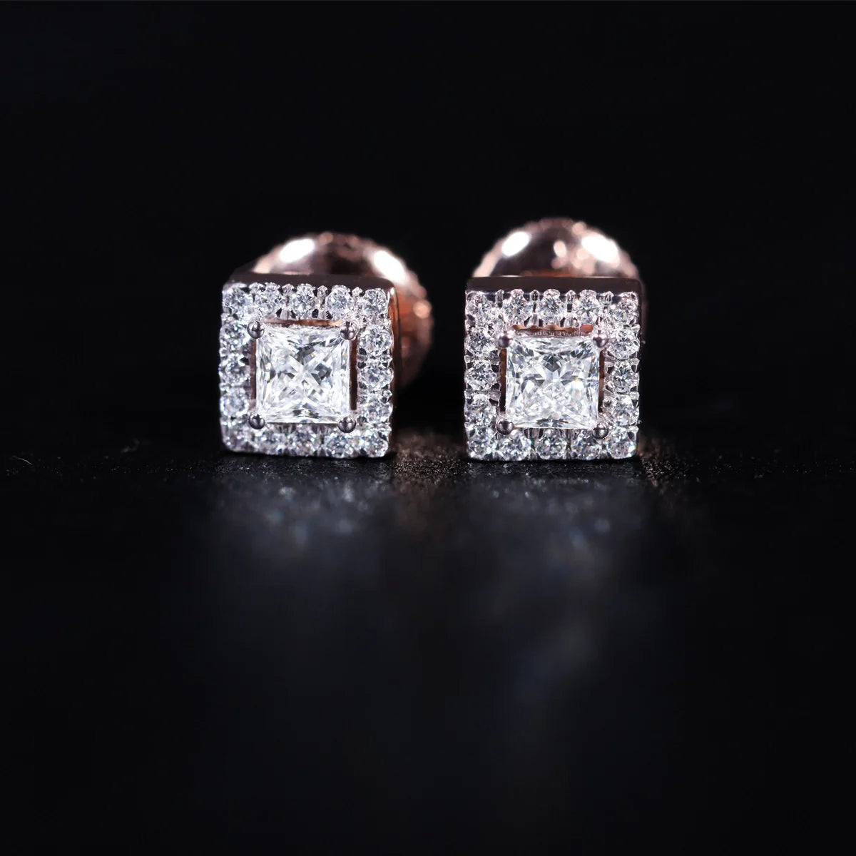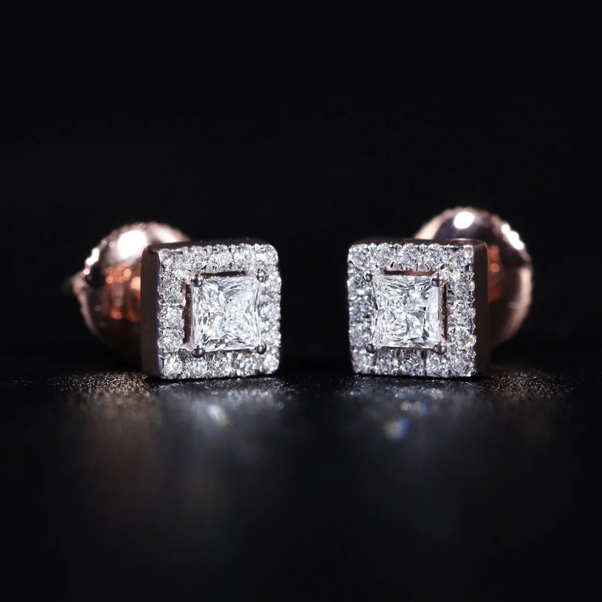 Princess Cut Halo Diamond Earrings | Gifts for Women and Girls