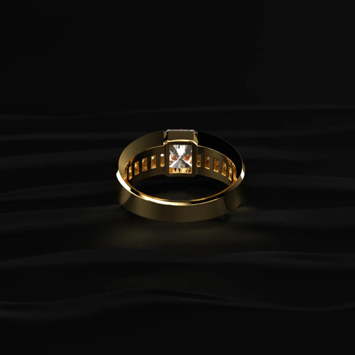 Men’s Radiant-Cut Gold Ring with Channel-Set Accents – Precision Meets Prestige