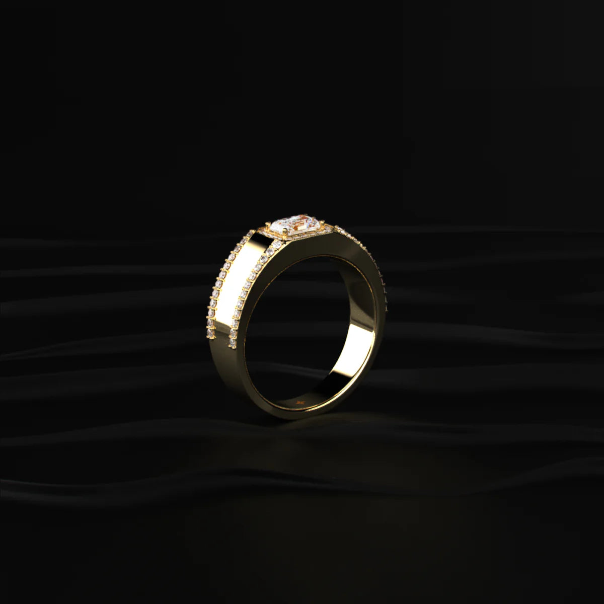 Radiant Solitaire Men's Ring With Accent Stone | Luxury Gold Radiant -Cut Halo Men's Ring