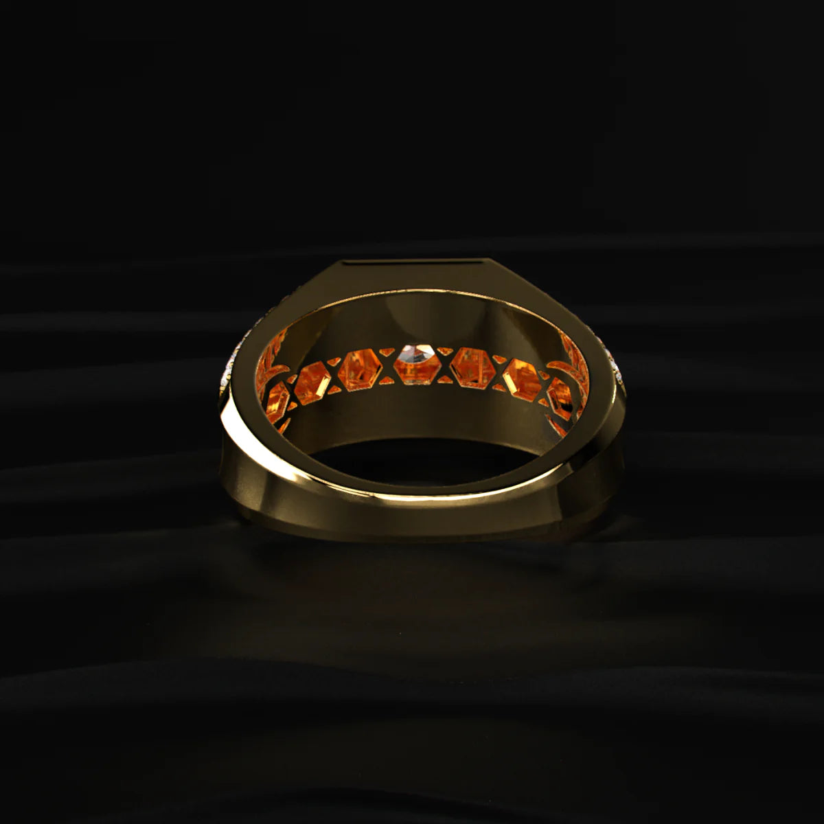 Band Design: Wide profile with pavé-shouldered detail