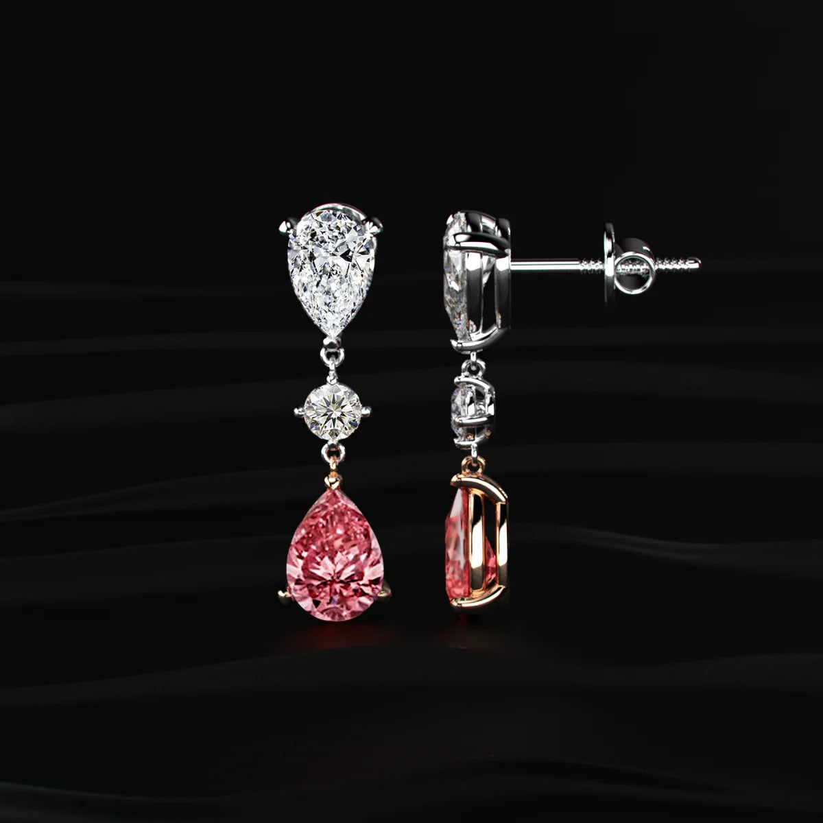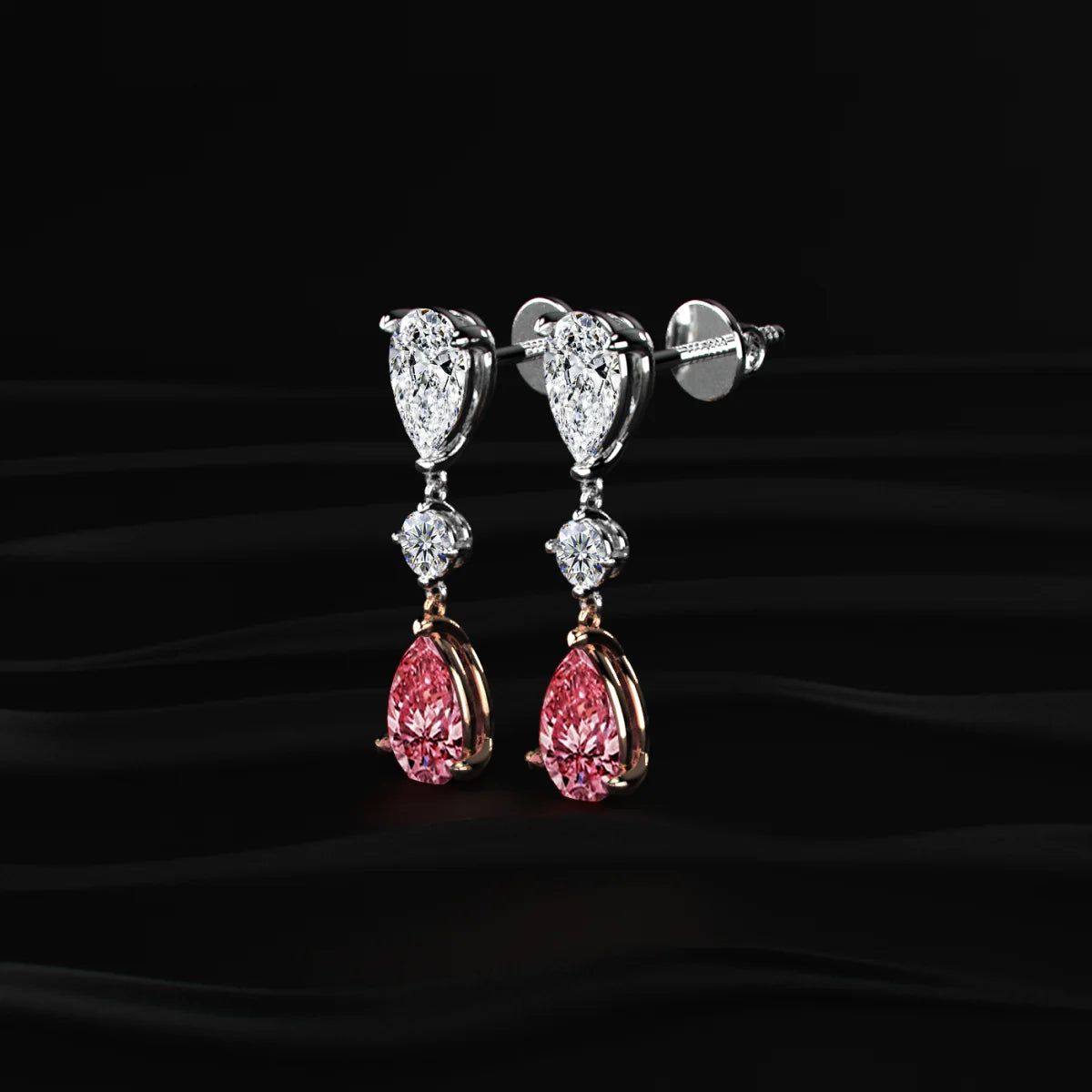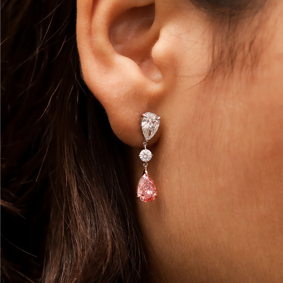 Sakura Pear shaped Pink Diamond Drop Earrings | Gifts for Women and Girls