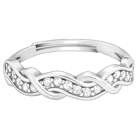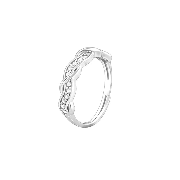 Silver Zircon Winding Wave Ring, Adjustable | Gifts for Women and Girls | With Certificate of Authenticity and 925 Stamp